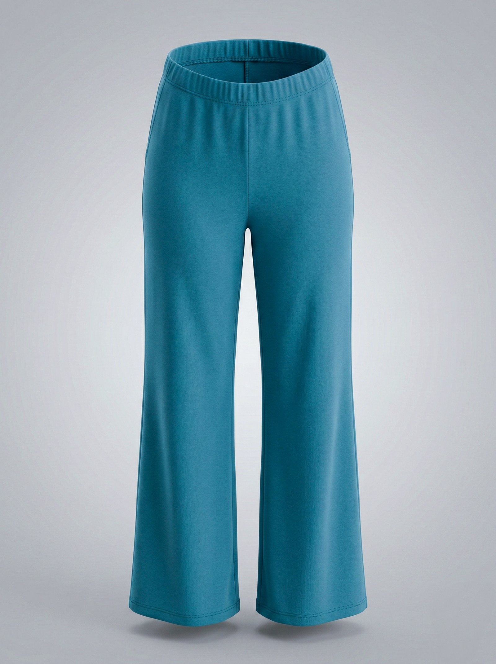 Crafted with a focus on clean lines and ease of wear, these pants feature a pull-on construction anchored by a wide, secure elastic waistband. This design eliminates the need for hardware, ensuring a smooth, uninterrupted fit around the waist and hips before falling into a generous, breezy wide leg. The rich, oceanic teal color serves as a striking yet grounded alternative to traditional neutrals.